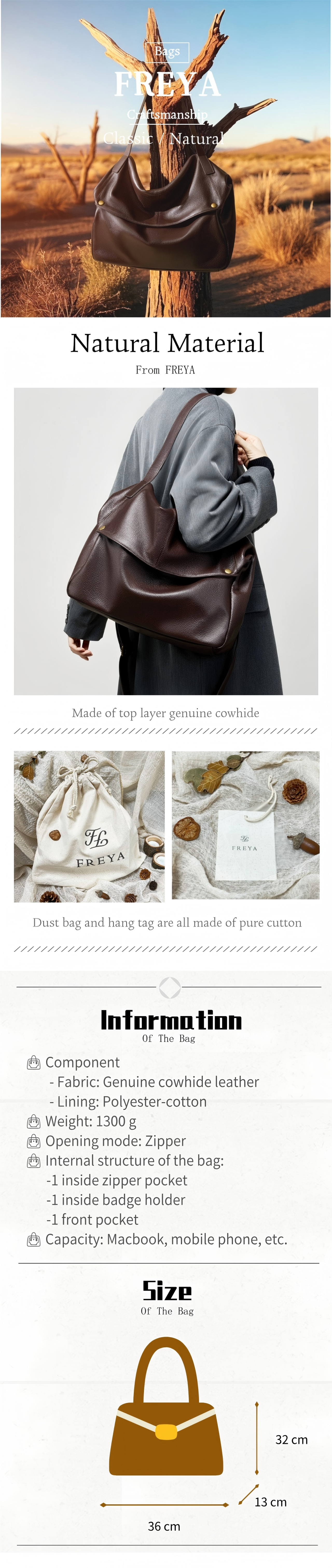 👜Thành phần vải: Da bò thật (Lớp trên cùng)