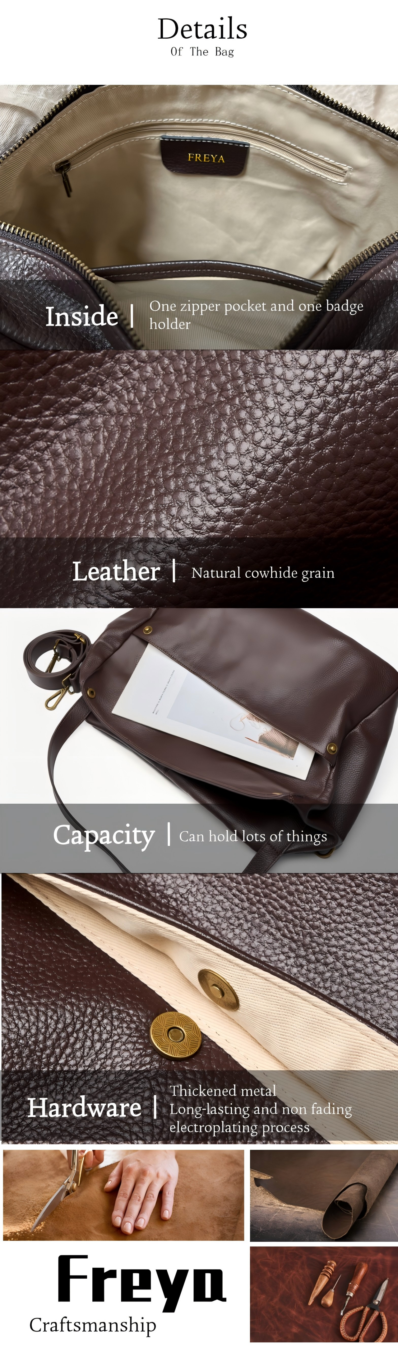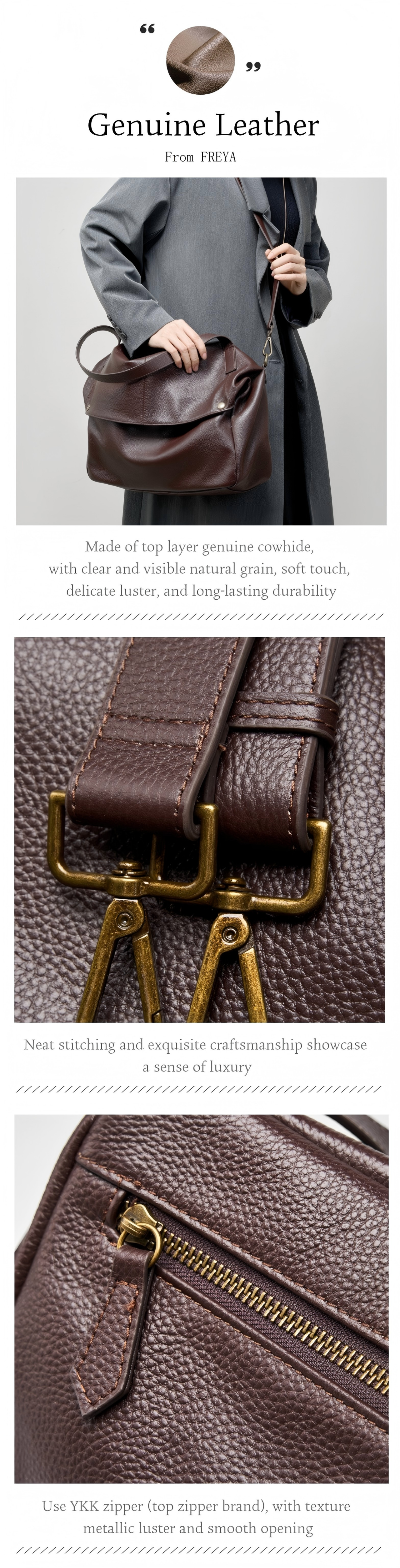 Cặp Tài Liệu Da Bò Thật FREYA, Túi Tote Sức Chứa Lớn, Túi Đeo Vai Đơn Giản, Dành Cho Nữ, Túi Đeo Chéo Thường Ngày