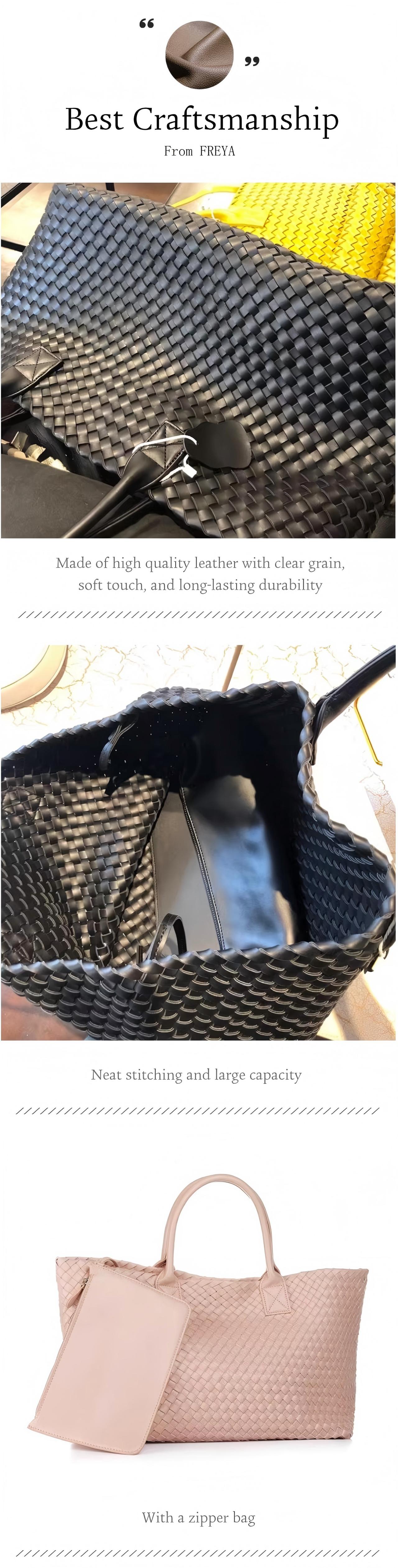 Túi Tote Dệt FREYA, Da Mềm, Túi Đeo Vai, Sức Chứa Lớn, Túi Xách, Dành Cho Nữ