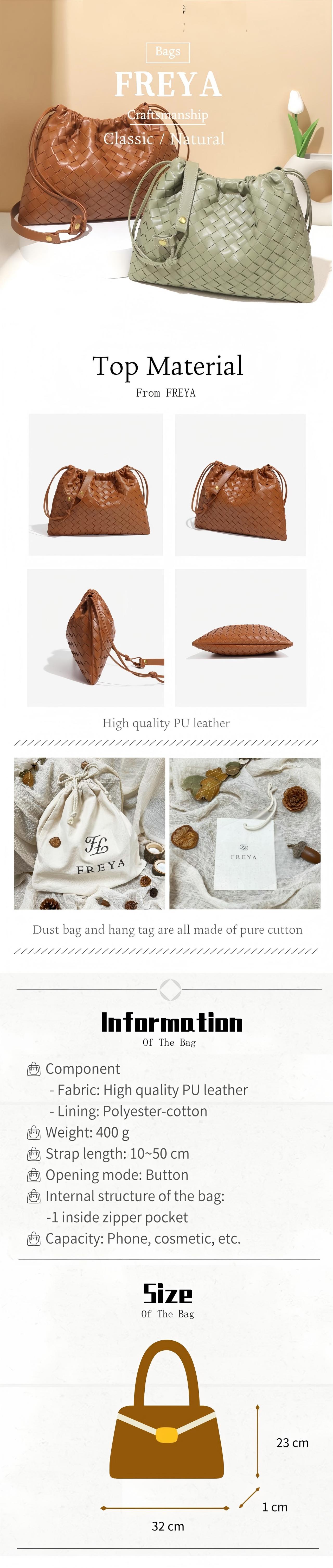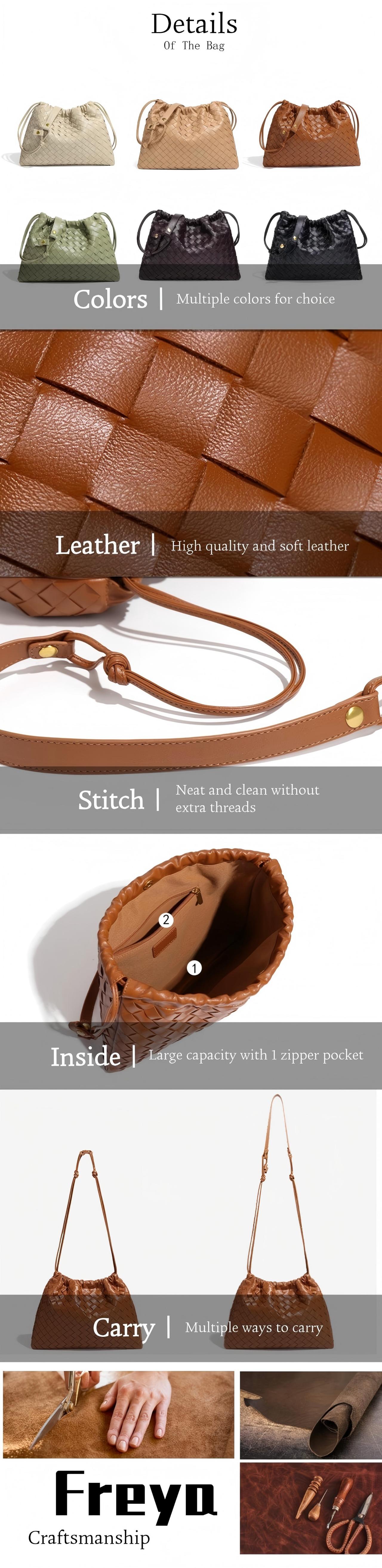 Túi Đeo Chéo Dệt FREYA, Túi Đeo Vai Da, Túi Dây Rút Nhỏ Túi Hobo, Dành Cho Nữ