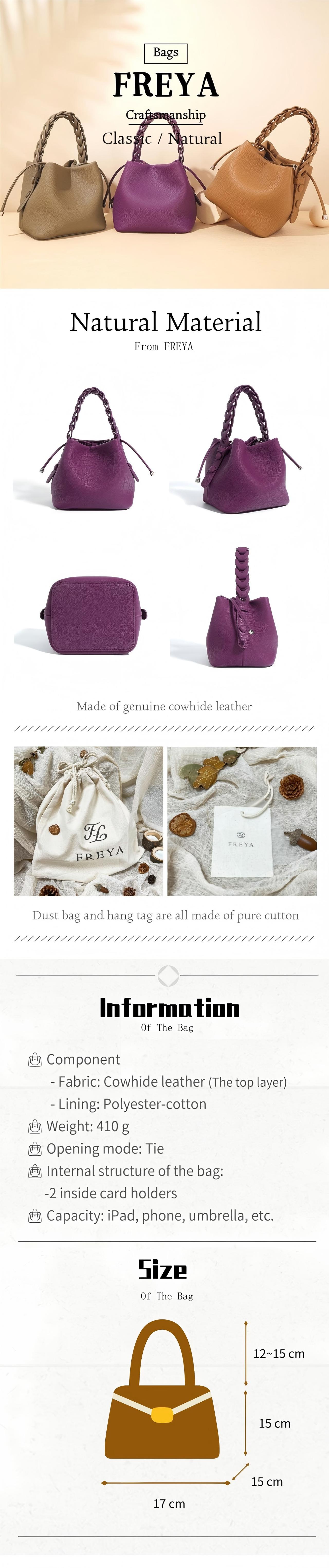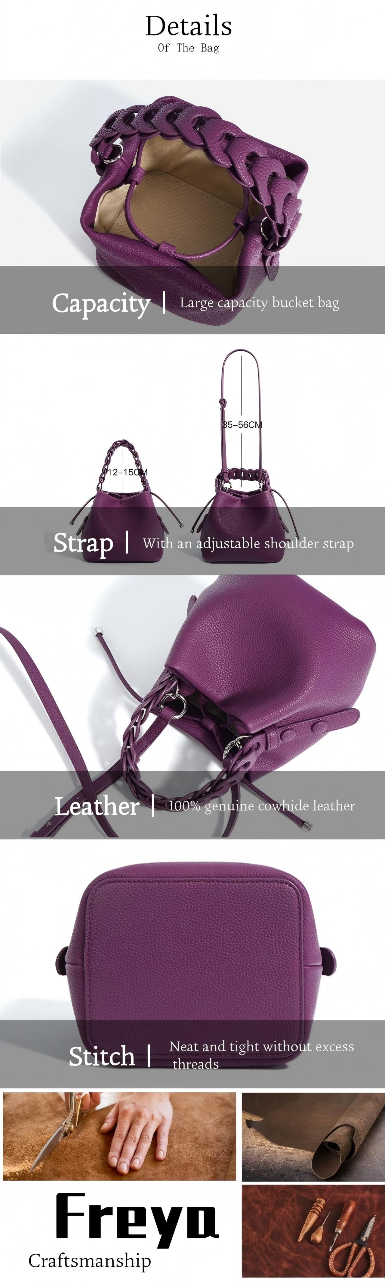 Túi Bucket Da Thật FREYA, Da Bò Lớp Trên Cùng, Túi Đeo Chéo, Túi Xách Đi Lại, Túi Đeo Vai Dễ Phối Đồ…