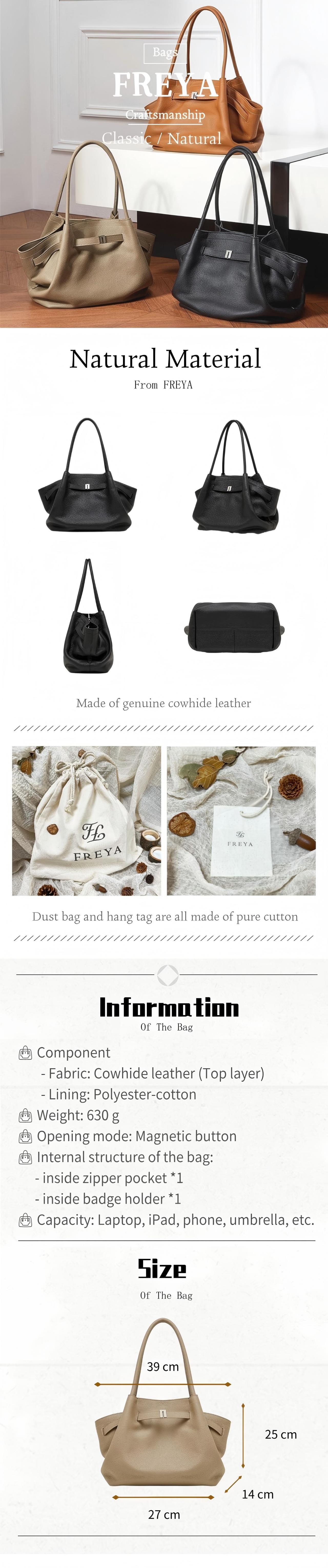 Túi Tote Da Thật FREYA, Túi Đeo Vai Da Bò Hàng Đầu, Dành Cho Nữ, Thích Hợp Đi Lại