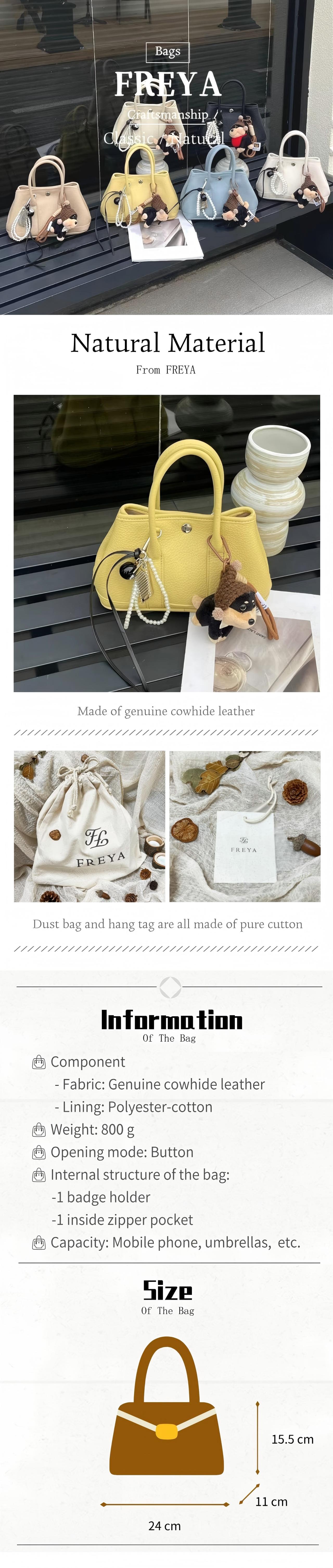 Túi Tote Da Thật, FREYA, Túi Xách Cho Nữ, Thiết Kế Vườn Độc Đáo Túi Đeo Chéo, Túi Đeo Vai Dễ Phối Đồ…