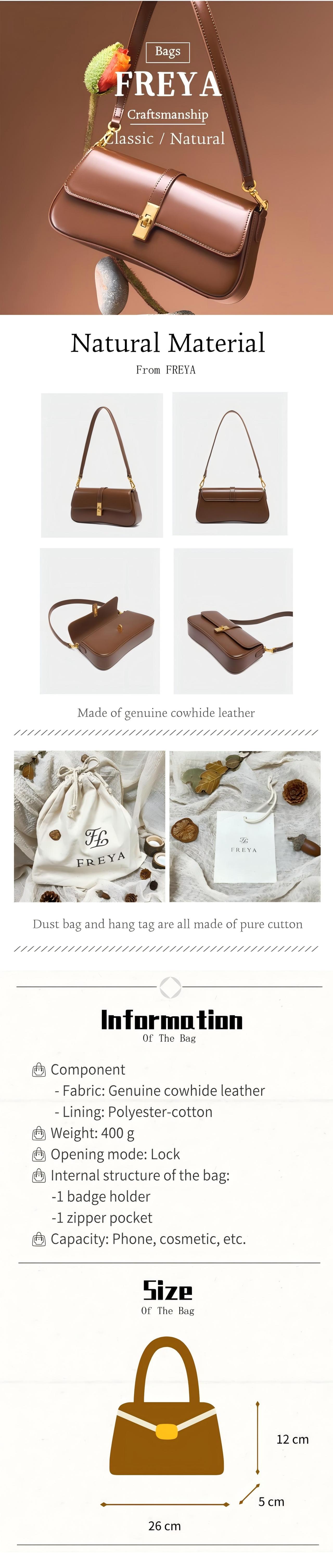 Túi Đeo Vai Da Thật FREYA, Túi Baguette Da Bò, Túi Đeo Chéo Cao Cấp Dành Cho Nữ lady bag