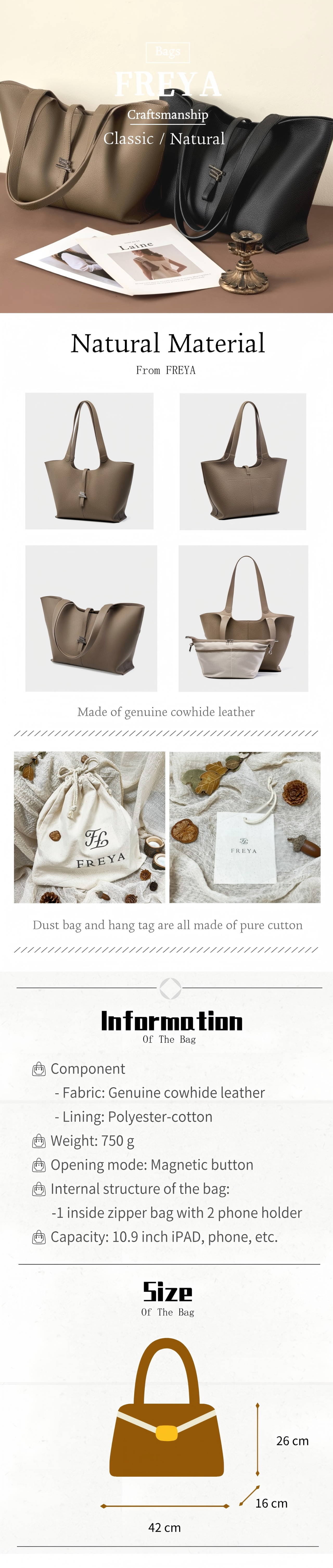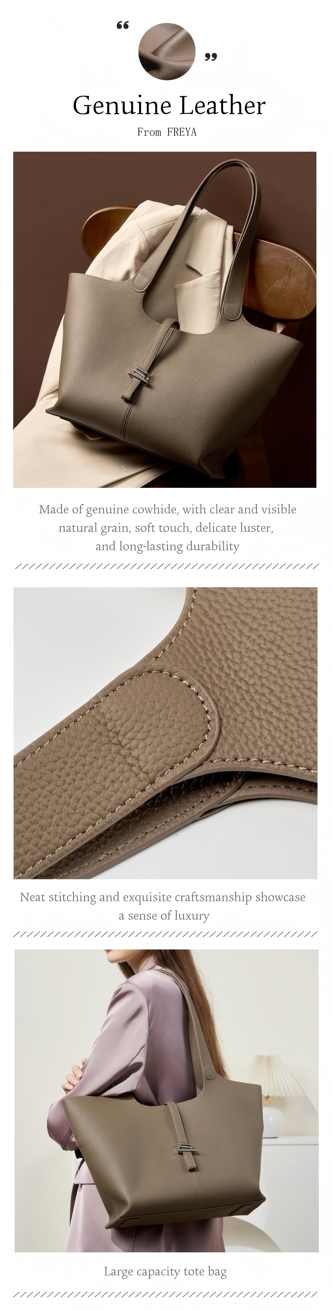 Cặp Tài Liệu Da Bò Thật FREYA, Túi Tote Sức Chứa Lớn, Túi Đeo Vai Đơn Giản, Dành Cho Nữ, Túi Đeo Chéo Thường Ngày