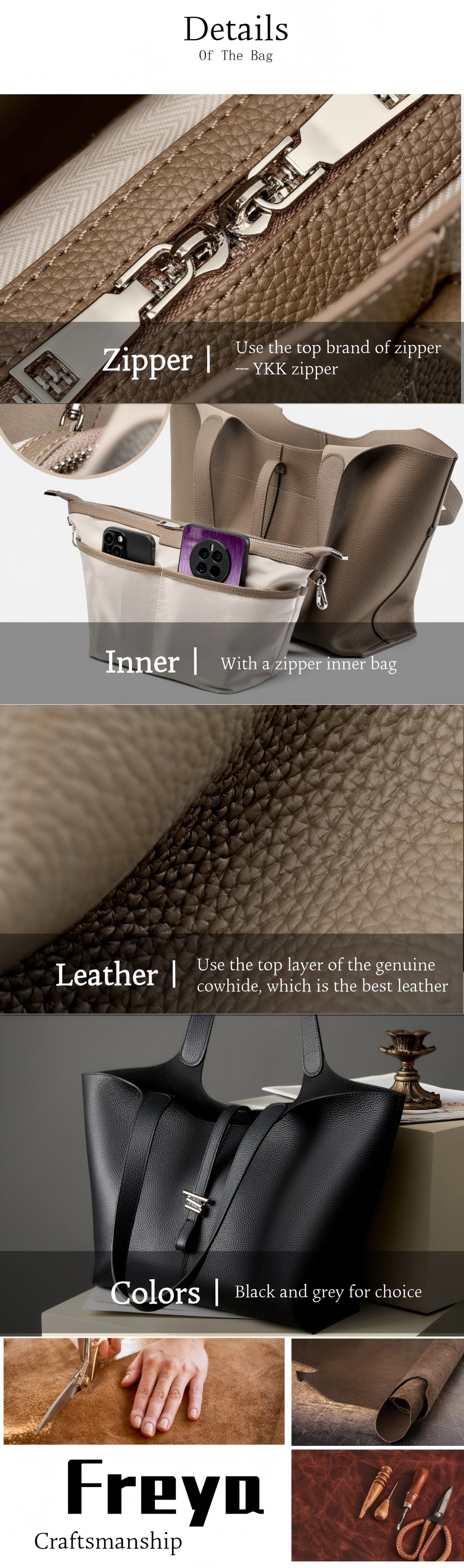 Túi Đeo Vai Da Thật FREYA, Da Bò Lớp Trên Cùng, Túi Tote, Túi Chuông Gió, Dành Cho Nữ, Thích Hợp Đi …
