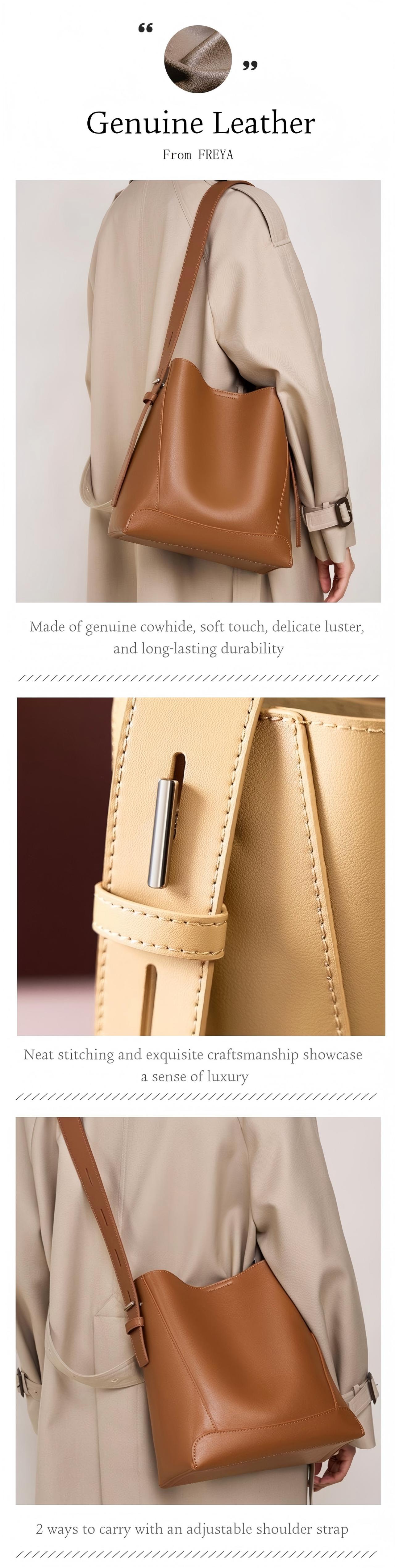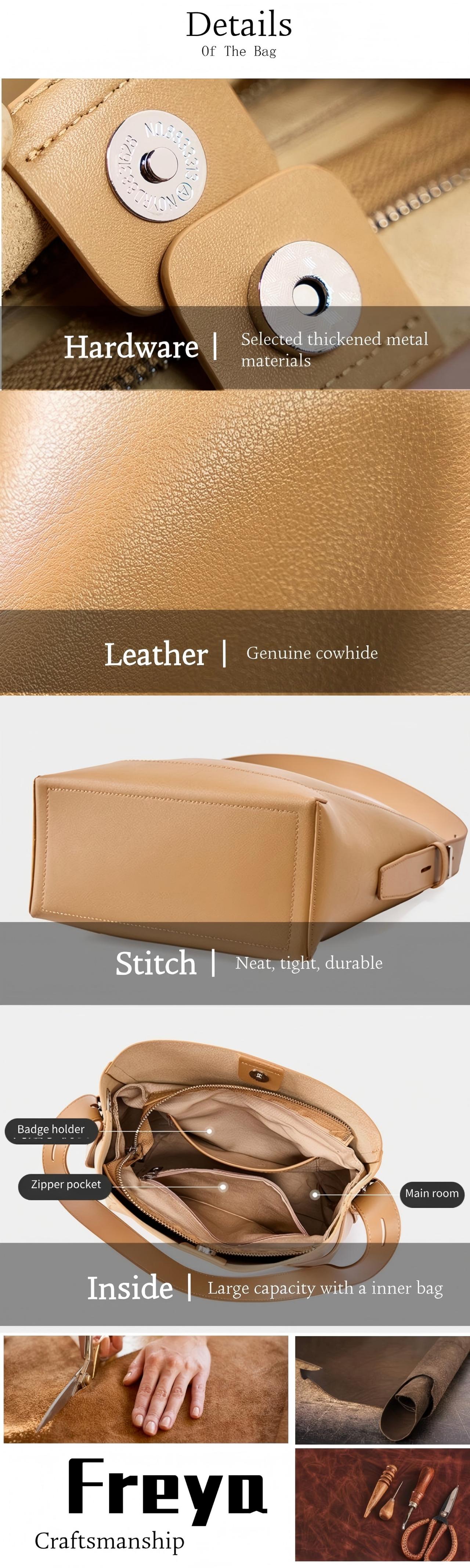 Túi Đeo Vai Da Bò Thật FREYA, Túi Tote Sức Chứa Lớn, Túi Đeo Chéo Đi Lại, Dành Cho Nữ