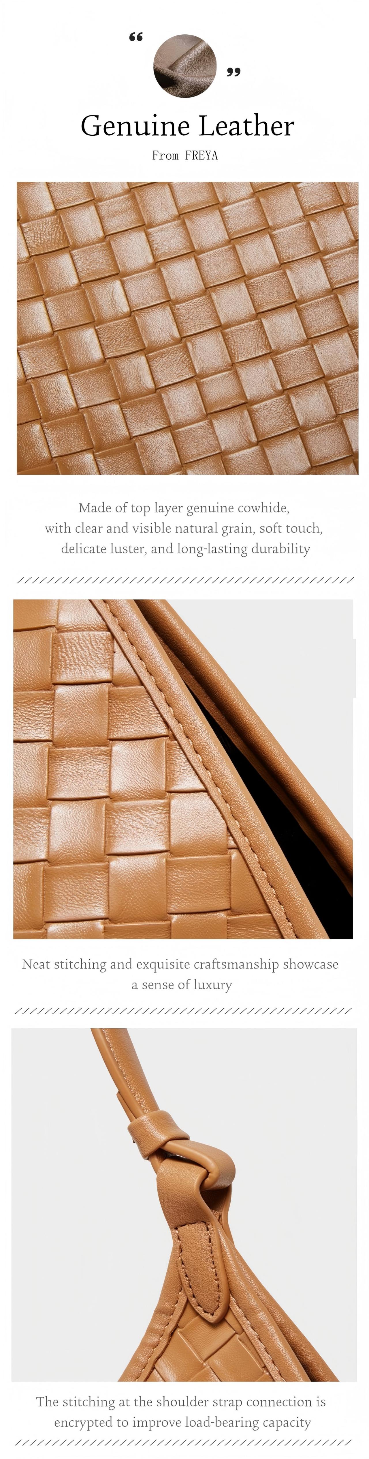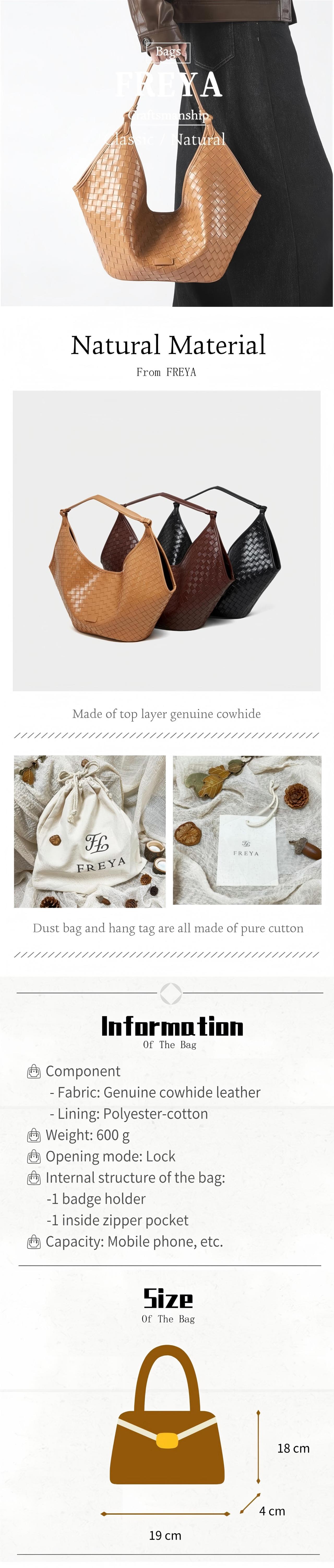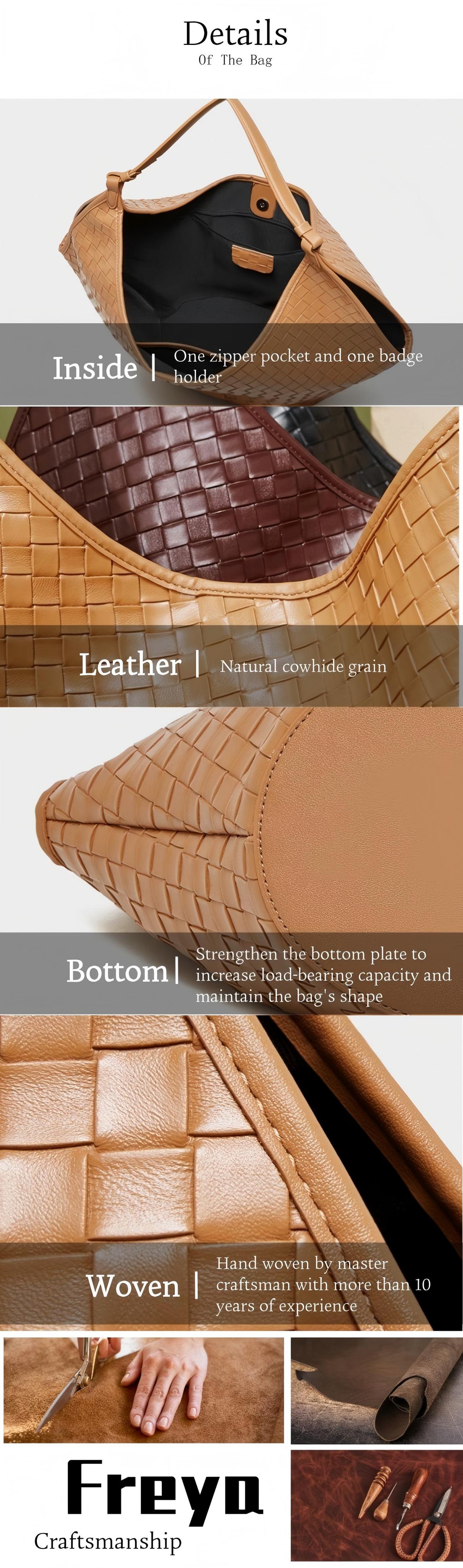 Túi Đeo Vai Da Bò Thật FREYA, Túi Tote Dệt, Sức Chứa Lớn, Thích Hợp Đi Làm, Túi Xách Cho Nữ